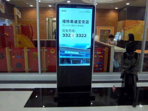 1.落地式廣告機(jī)靈活性較高,怎么理解,就是說,只要地面空間場地不受限制,就可以隨意挪動擺放;