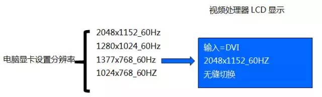 2.電腦顯卡的輸出分辨率設置不同的值,處理器LCD顯示的輸入分辨率都是一個固定值。如:一直顯示2048x1152_60Hz